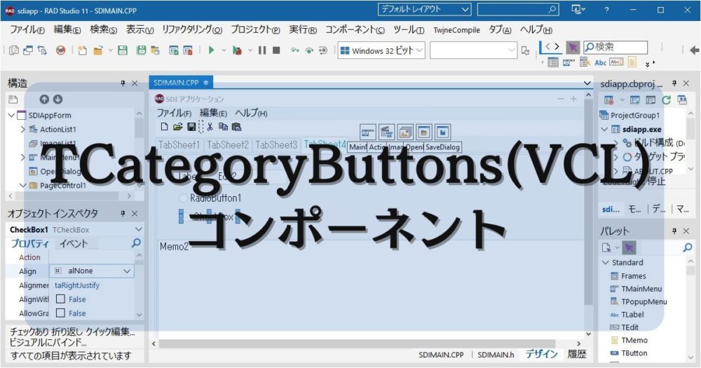 VCL ライブラリに含まれる TCategoryButtonsコンポーネントは、ボタンをグループ(カテゴリ)ごとに整理して表示できる便利なコントロールです。